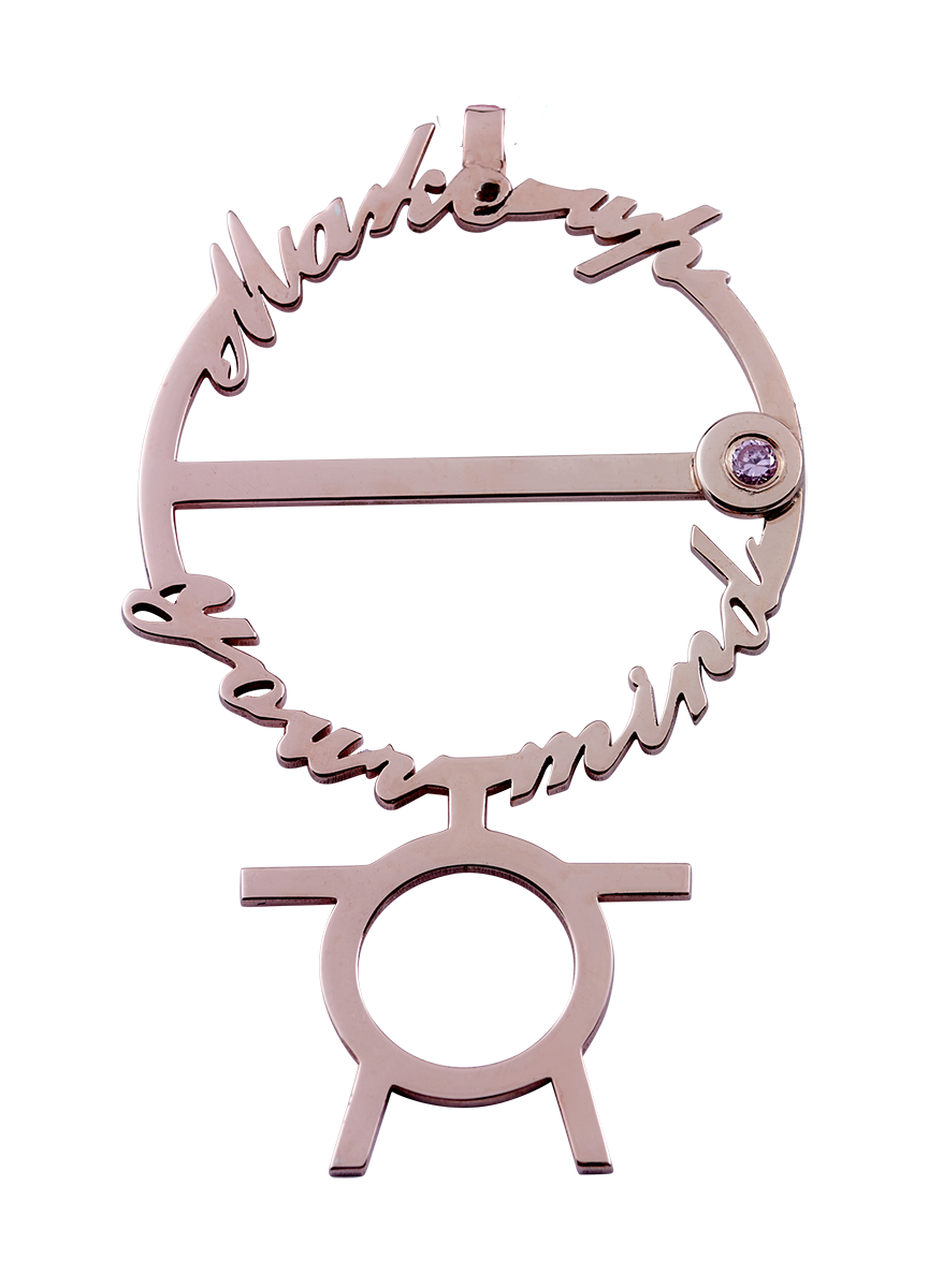 14-carat gold StickGenie. Reminder jewelry. Make up your mind. Inspired by Bob Proctor’s Stickperson with the text “Make up your mind.”