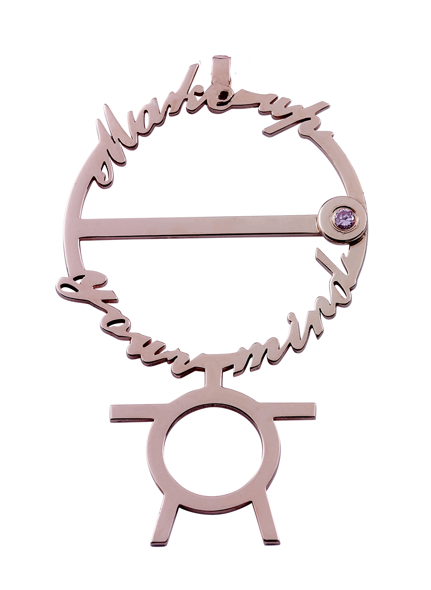 14-carat rose-gold StickGenie. Reminder jewelry. Make up your mind. Inspired by Bob Proctor’s Stickperson with the text “Make up your mind.”